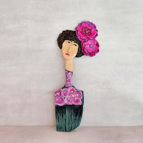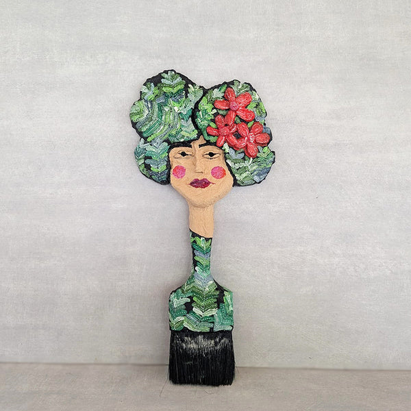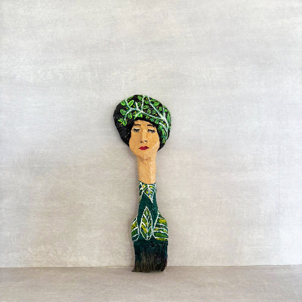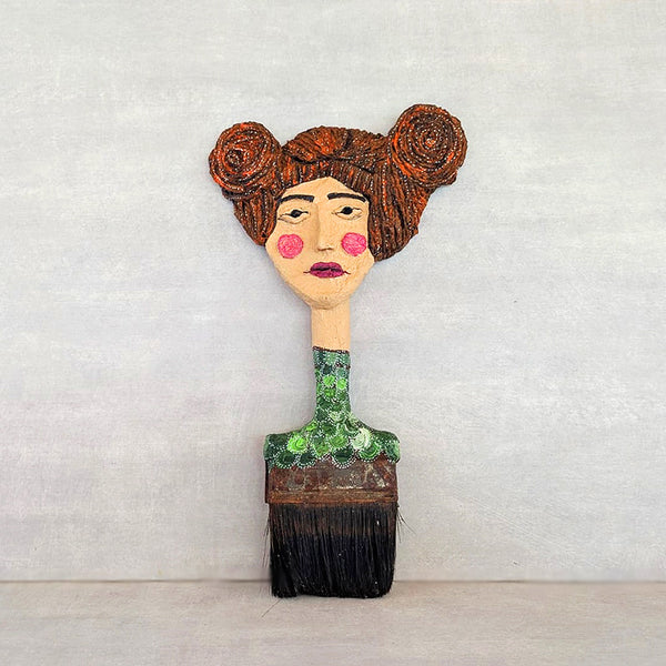דיוקן נשי מעיסת נייר על מברשת צבע ישנה