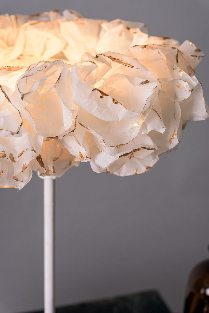 פרח לבן עם שוליים בזהב - מנורה עומדת מנייר