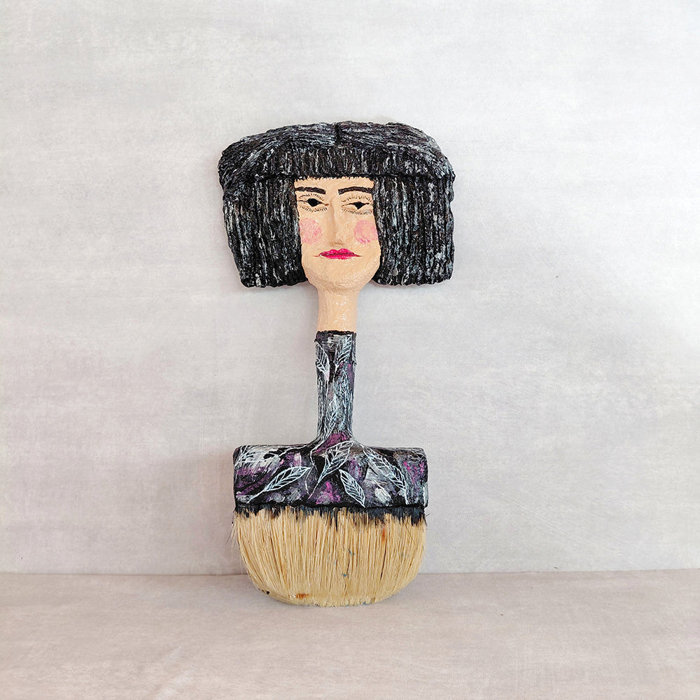 • הפסל מפוסל בעיסת נייר על מברשת צבע ישנה שיצאה מכלל שימוש וצבוע בצבעי אקריליק.