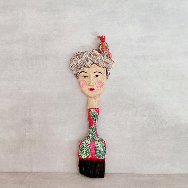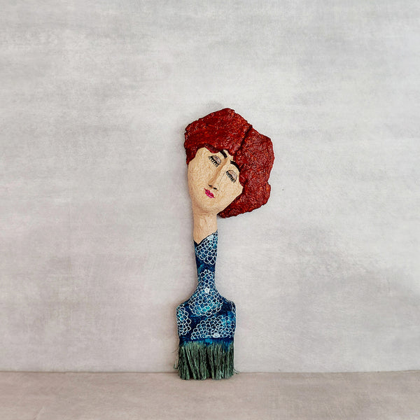 זהבה - דיוקן מעיסת נייר על מברשת צבע ישנה